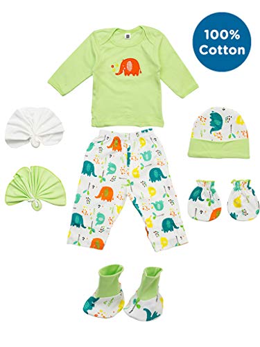 HomeBabyBath & SkinGift SetsMee Mee New Born Baby Gift Set | Soft Cotton Clothing Essentials for Infants/Baby Girls, Boys | Baby Shower Clothing Hamper (7 Pieces, Green) | Ideal Gift for New Born Baby