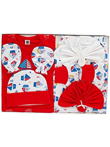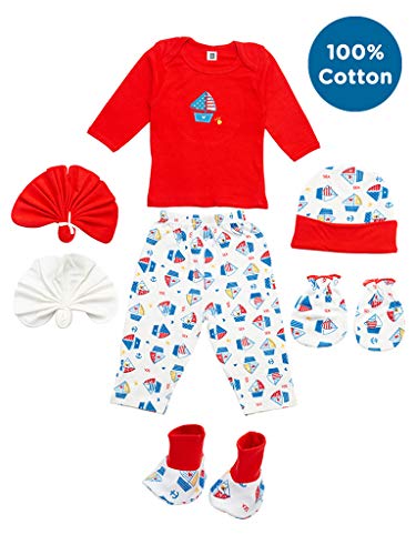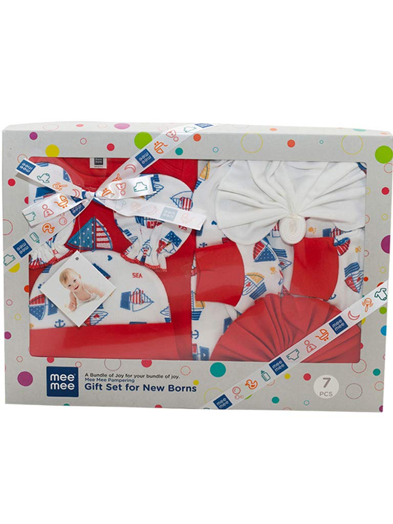 HomeBabyBath & SkinGift SetsMee Mee New Born Baby Gift Set | Soft Cotton Clothing Essentials for Infants/Baby Girls, Boys | Baby Shower Clothing Hamper (7 Pieces, Red)| Ideal Gift for New Born Baby