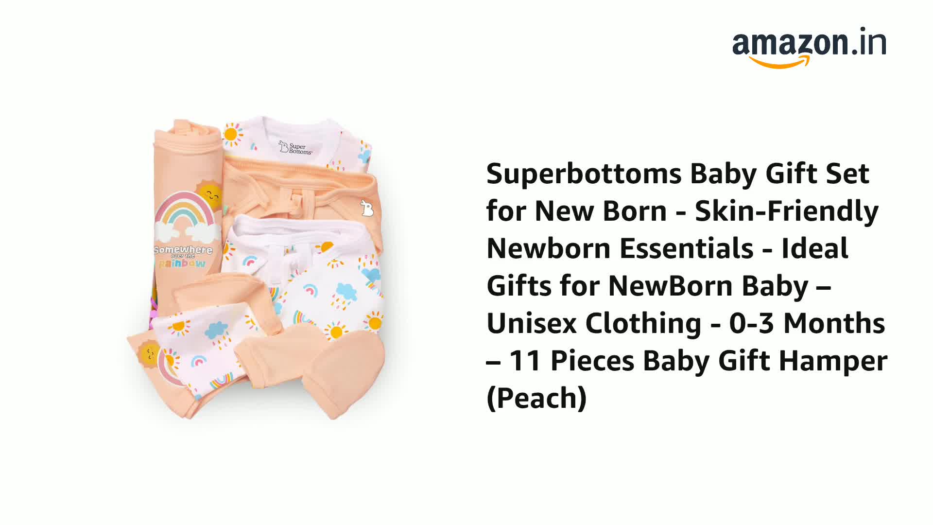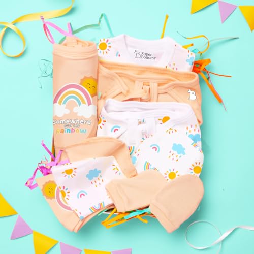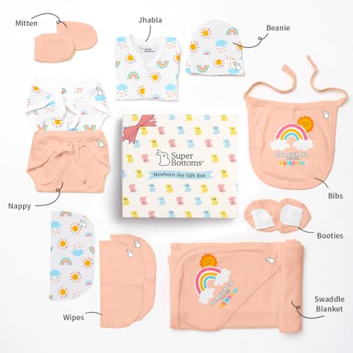 Wondering what to gift to a newborn baby? SuperBottoms brings you the perfect baby gift set for new born! It is ideal for babies from day 1 to 3 months. Contains thoughtfully handpicked 11 unisex items 3 Reusable Baby Wipes a Bib a pair of Mittens and Booties each a Beanie a Swaddle and a Jhabla. Indeed all the products are designed with the gentlest care and the greatest love by a team of moms. They are made with 100% Cotton totally safe for the newborns delicate skin. Ideal gift for newborn baby boy and girl or preparing for your own newborn's arrival because every baby deserves the best from day one! What it contains? Jhabla - 1 Wipes - 3 Bib - 1 Beanie - 1 Swaddle - 1 Mittens - 1 pair Booties - 1 pair Nappies - 2`