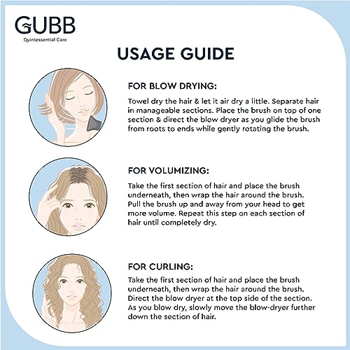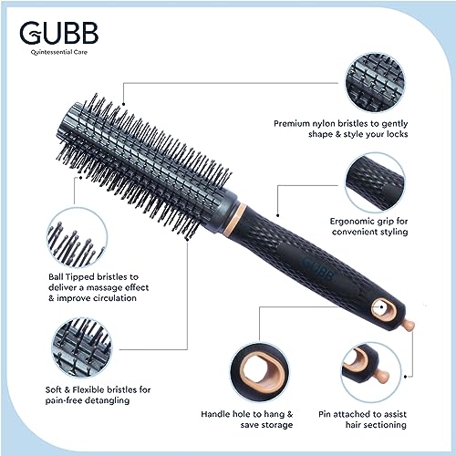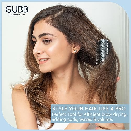 GUBB Elite Range Round Hair Brush For Blow Drying & Hair Styling: Perfect Tool for Efficient Blow Drying, Adding Curls, Waves & Volume | Premium Nylon Bristles to gently Shape & Style your Locks | Lightweight , Long Lasting Curles & Waves - For All Hair T