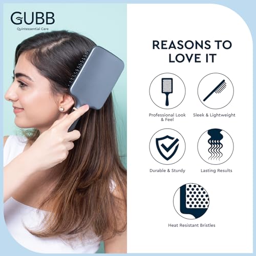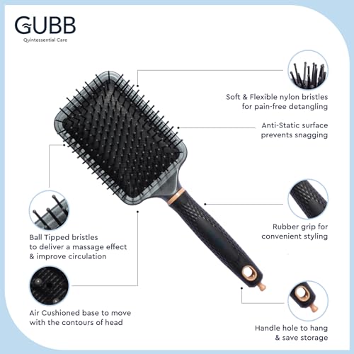 GUBB Paddle Hair Brush For Detangle & Straighten Hair : Elite Range - Ultra Soft & Flexible Nylon Bristles Great for Straightening, Smoothing out Curls, Frizz & Flyaways | Cushioned Hair Brush With Pin For All Hair Types - For Women, Men, Wet And Dry Hair