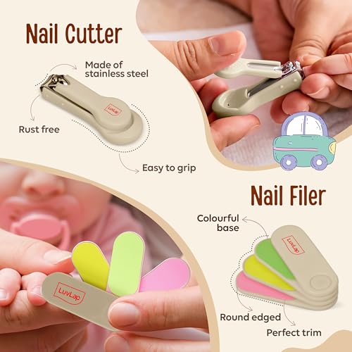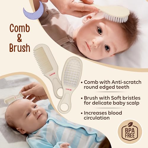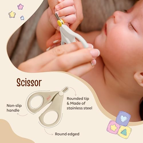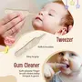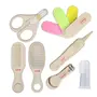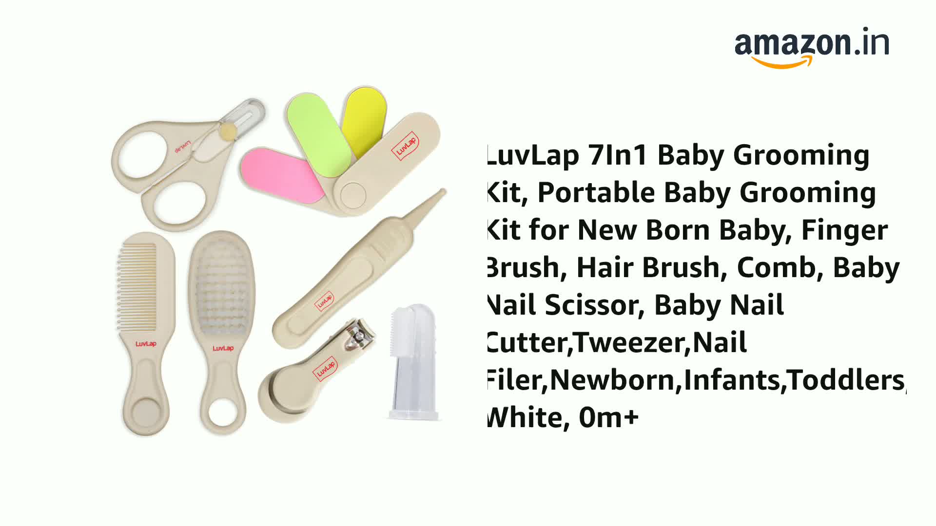 This complete new born oral nail and hair care set includes: One Finger Brush to clean Baby Tongue & Gum Hair Brush with Soft Bristles to comb Delicate baby Scalp Comb with Anti-Scratch Round Edged Comb Teeth Easy Grip High Quality Nail Scissor Nail Clipper to shape and polish baby nails Tweezer to remove nasal congestion and Nail Filer to Smoothen the nail edges.