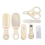 This complete new born oral nail and hair care set includes: One Finger Brush to clean Toe & Gum Hair Brush with Soft Bristles to comb Delicate Scalp Comb with Anti-Scratch Round Edged Comb Teeth Easy Grip High Quality Nail Scissor Nail Clipper to shape and polish nails Tweezer to remove nasal congestion and Nail Filer to Smoothen the nail edges.