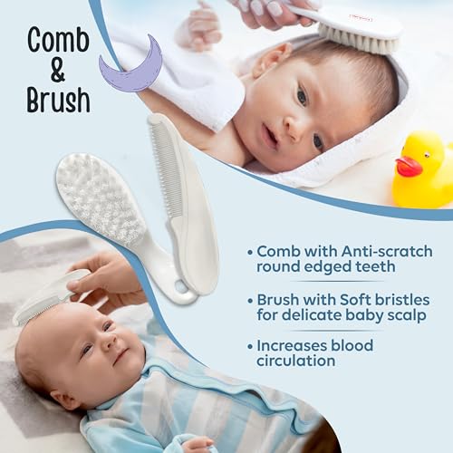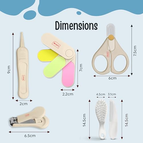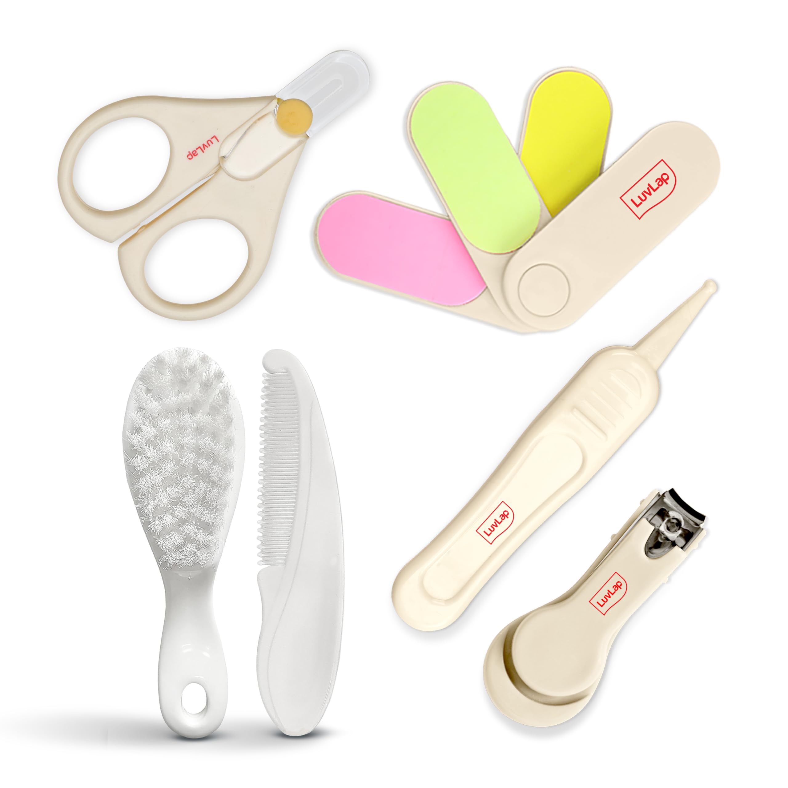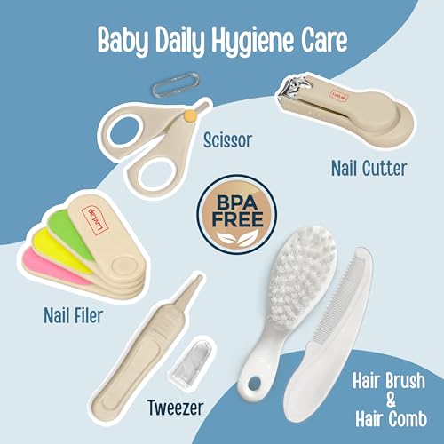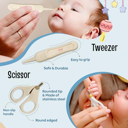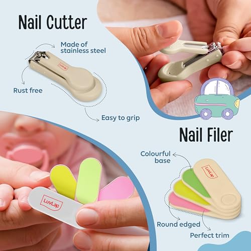 Luvlap baby Nail grooming & Hair grooming combo set come with fine blades help painless nail cutting protective cover prevents dust on scissor blades and tweezer ends all products have anti slip handles and are made of BPA free material. At LuvLap we endeavor to weave the little stories into our products with an emphasis on child safety and enrichment of features. So that your little one gets the comfort thats next only to the warmth of your lap.