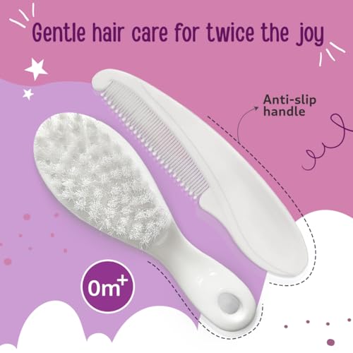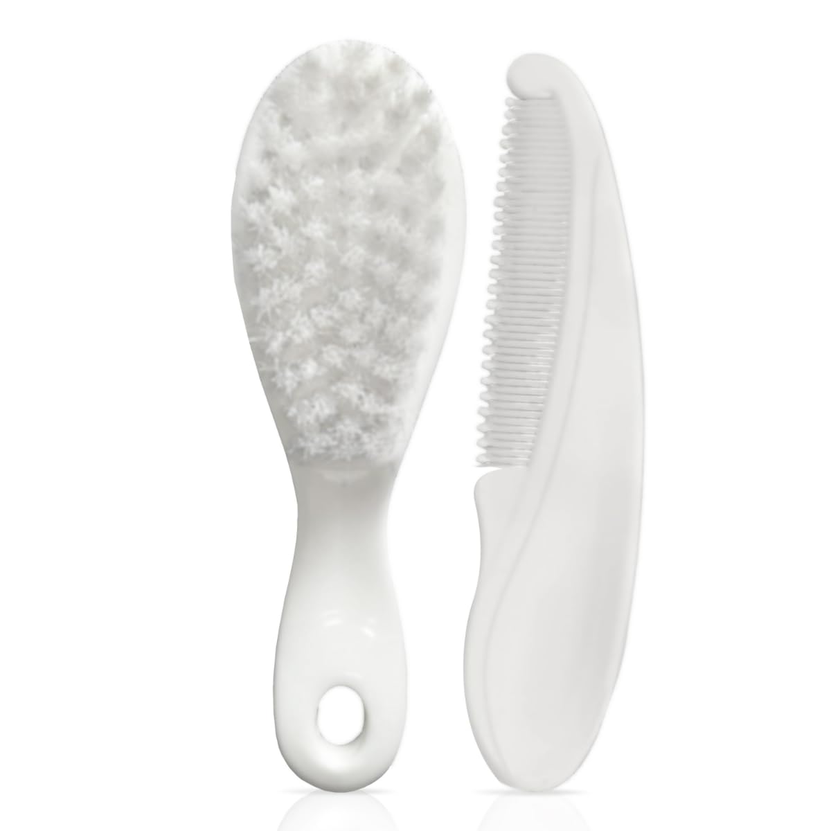 Set of Baby Hair Brush and Comb. Made of BPA material the hair brush has extremely soft bristles perfect for grooming new borns. Comb tooth has round edges to avoid scratching delicate baby scalp.