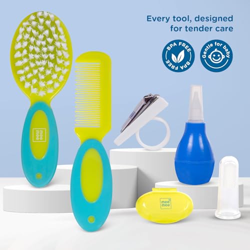 HomeBabyBath & SkinGrooming EssentialsMee Mee Premium 6 in 1 Grooming Kit for New Born Baby with Nail Clipper, Nose Cleaner, Finger Brush, Soft Hair Comb |Kids Accessories Set | Ideal for Travelling & Home Use