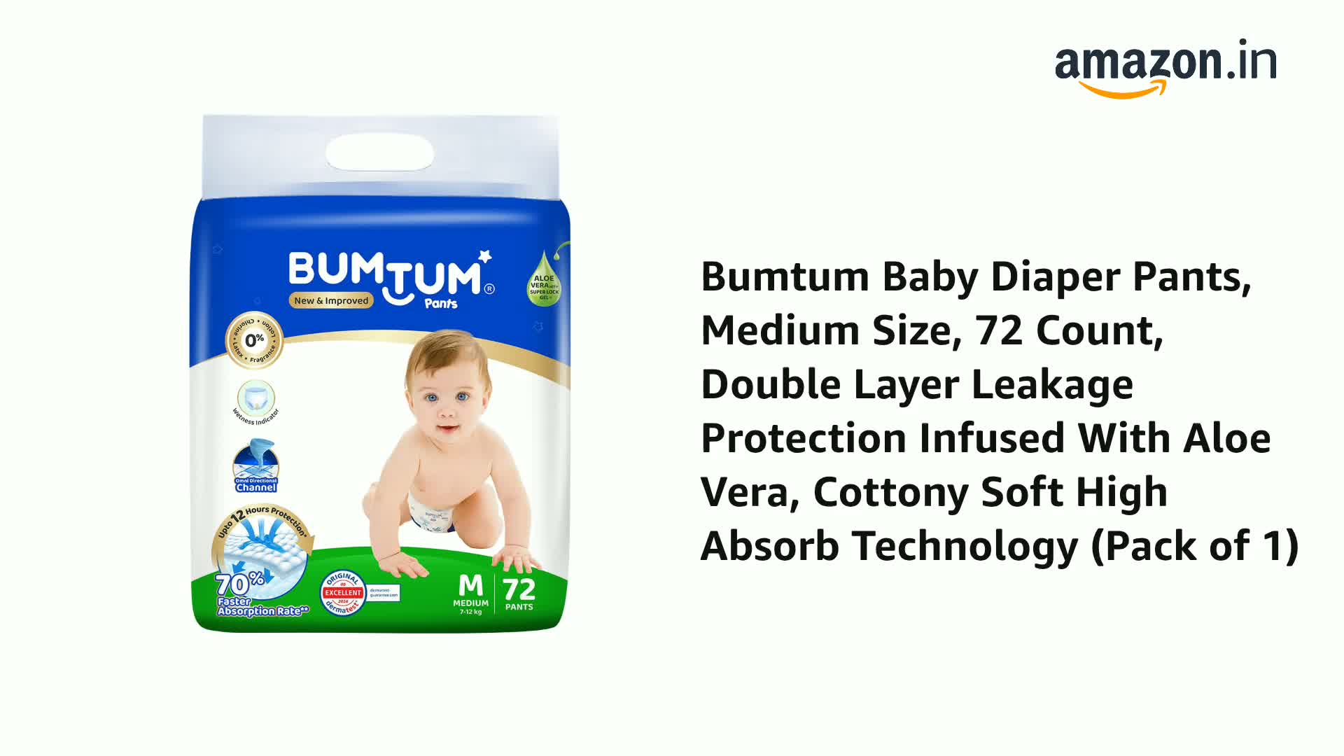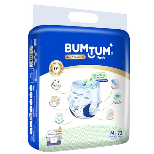 Bumtum Baby Diaper Pants with Leakage Protection -7 to 12 Kg (Medium 72 Count Pack of 1)