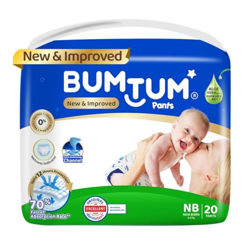 Bumtum Baby Diaper Pants, New Born 20 Count, Double Layer Leakage Protection Infused With Aloe Vera, Cottony Soft High Absorb Technology