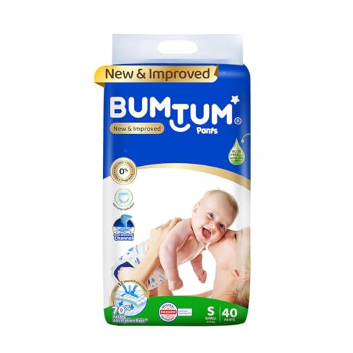 Bumtum Baby Diaper Pants, Small Size 40 Count, Double Layer Leakage Protection Infused With Aloe Vera, Cottony Soft High Absorb Technology