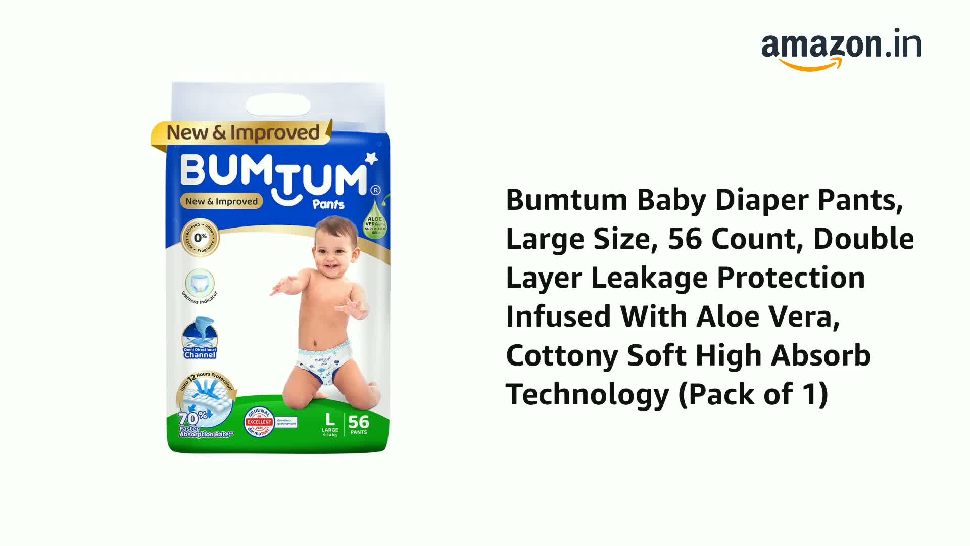 • LEAKPROOF:- There is nothing to worry about leakage with the double and bubble layer cuff used in the Bumtum diaper that snugly fits your baby without any discomfort. HIGH ABSORBENCY:- The large absorbing area of the pad ensures maximum dryness for the ba