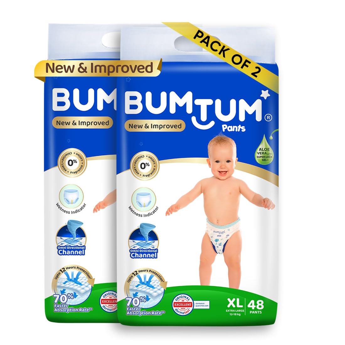 Bumtum Baby Diaper Pants, XL Size, 96 Count, Double Layer Leakage Protection Infused With Aloe Vera, Cottony Soft High Absorb Technology