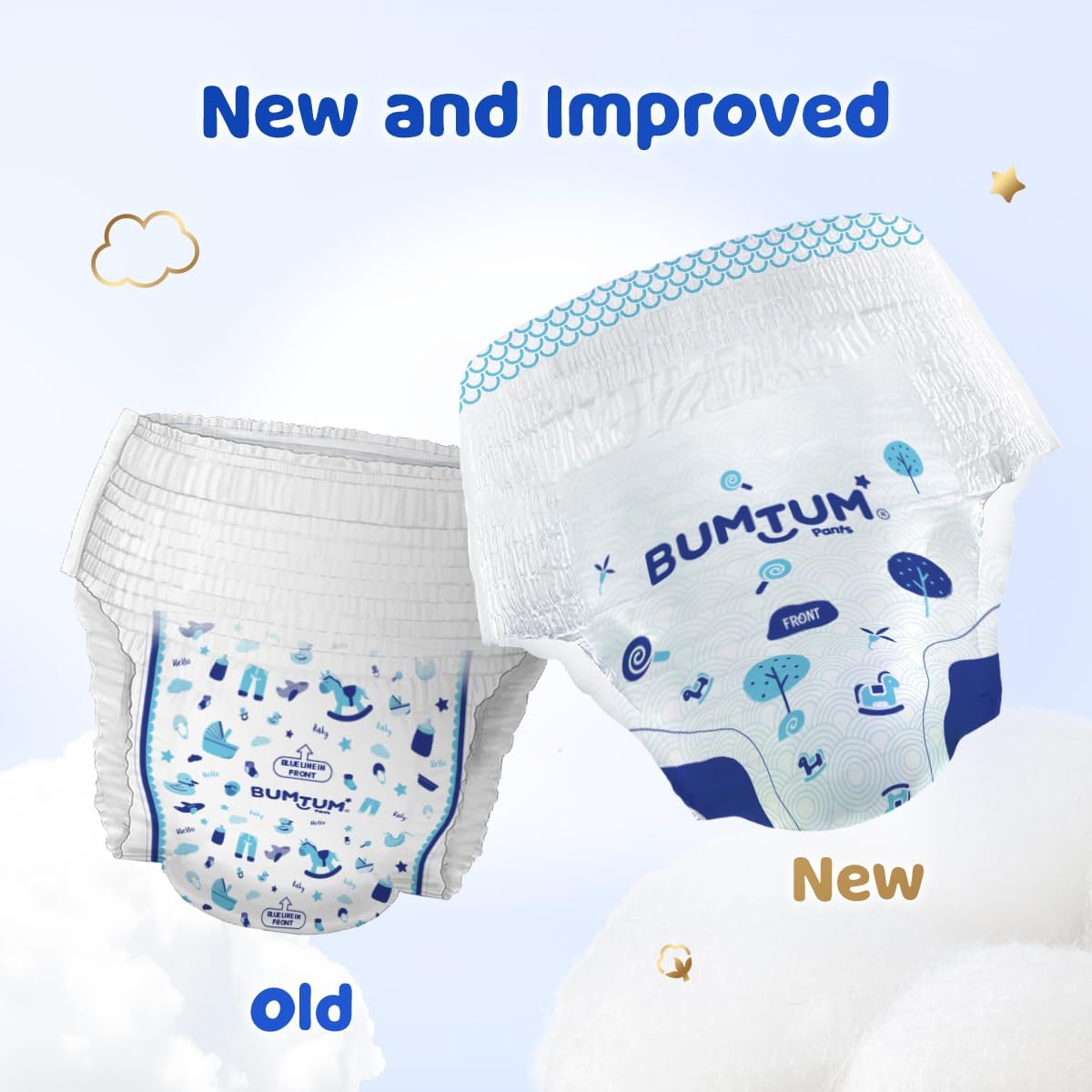 • BUMTUM PANT-STYLE DIAPERS: are uniquely curated to keep your baby's day & night full of comfort and materialized with cottony soft breathable and non-woven material that ensures a cosy experience.