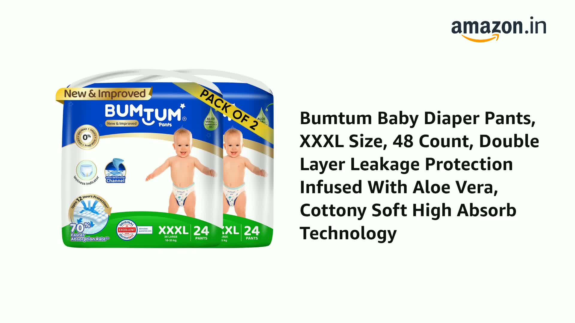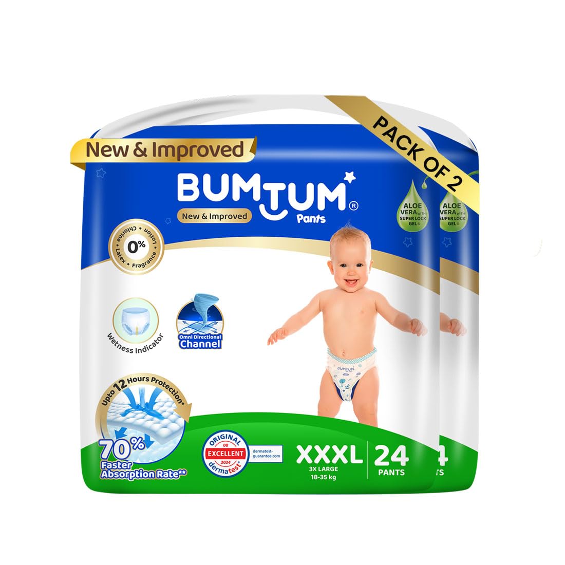 Bumtum Baby Diaper Pants, XXXL Size, 48 Count, Double Layer Leakage Protection Infused With Aloe Vera, Cottony Soft High Absorb Technology