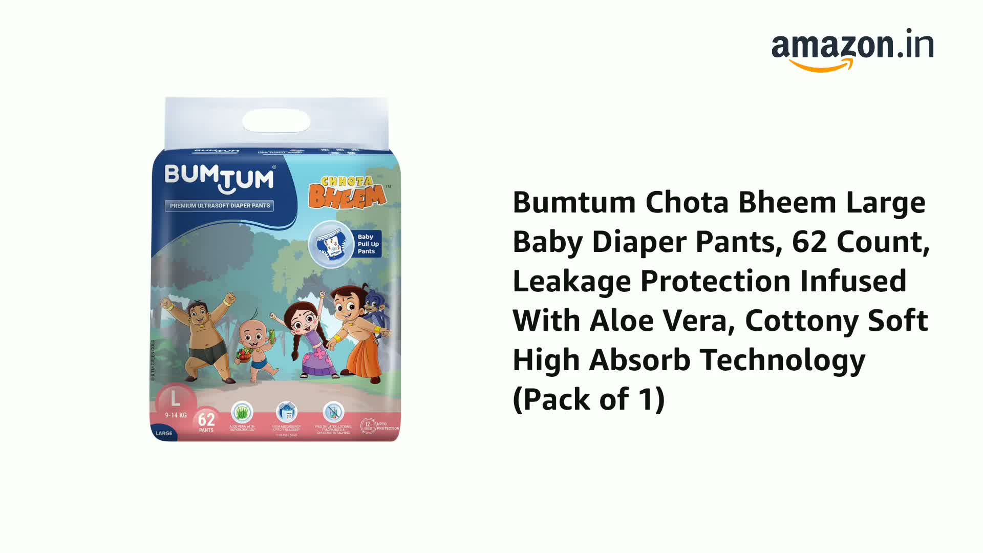 Bumtum Chota Bheem Large Baby Diaper Pants, 148 Count, Leakage Protection Infused With Aloe Vera, Cottony Soft High Absorb Technology