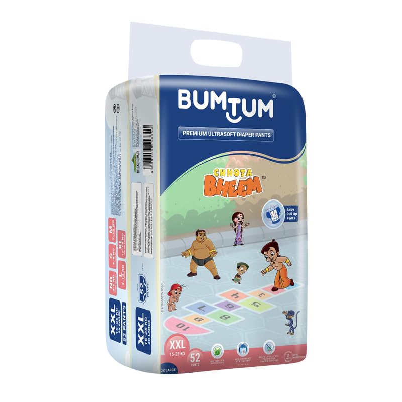 Bumtum Chota Bheem XXL Size Baby Diaper Pants 52 Count Leakage Protection Infused With Aloe Vera Cottony Soft High Absorb Technology