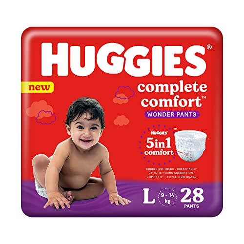 Huggies Complete Comfort Wonder Pants Large (L) Size Baby Diaper Pants, 28 count, with 5 in 1 Comfort