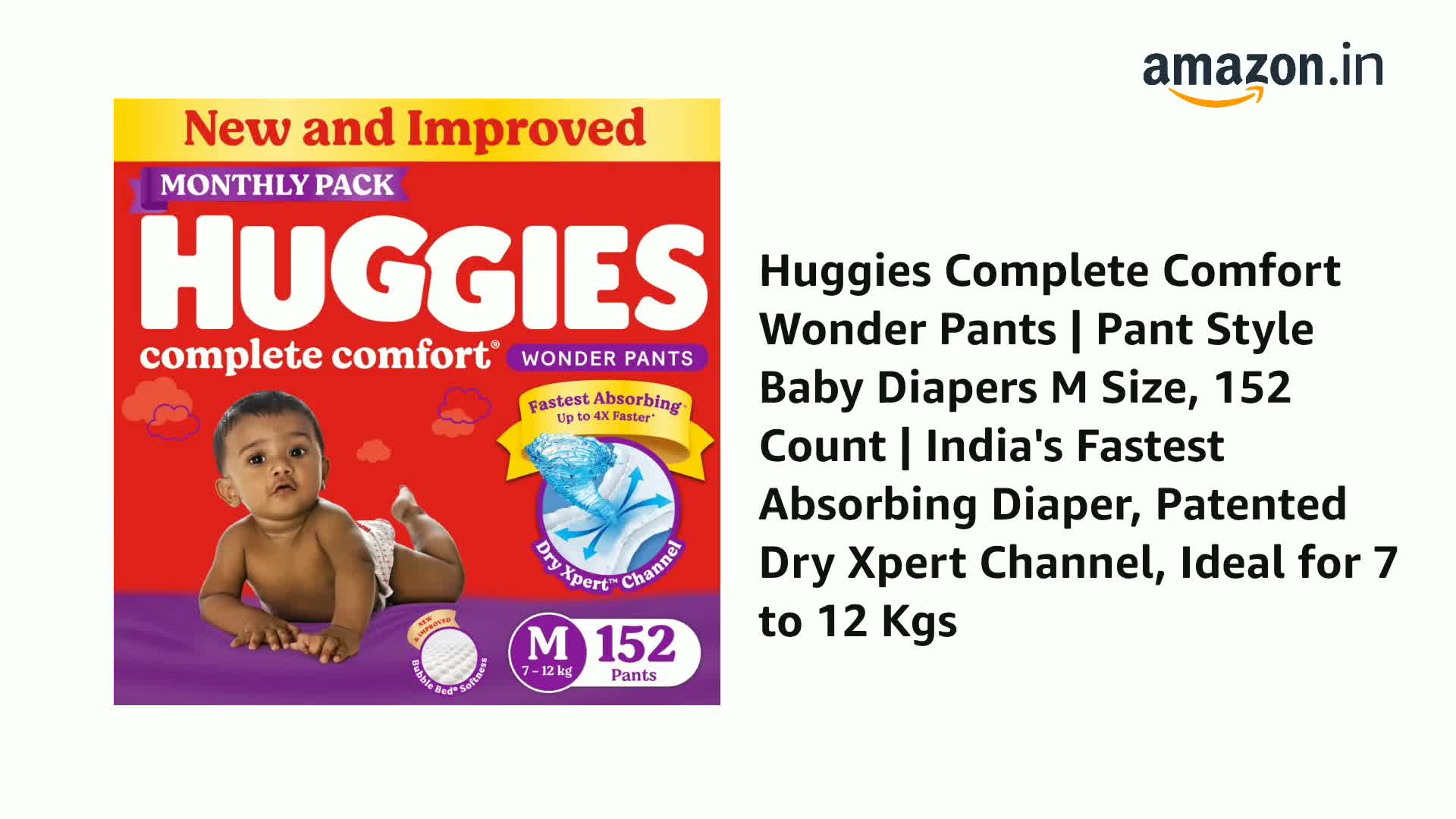 • New & Improved Huggies Complete Comfort Wonder Pants - India's Fastest Absorbing diaper with Patented Dry Xpert Channel; Medium size / M Size baby diapers