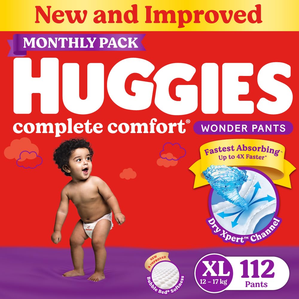 • New & Improved Huggies Complete Comfort Wonder Pants - India's Fastest Absorbing diaper with Patented Dry Xpert Channel; Extra Large size / XL Size baby diapers