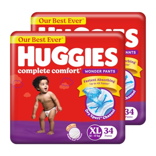 Huggies Complete Comfort Wonder Pants | Pant Style Baby Diapers XL Size, 68 Count | India's Fastest Absorbing Diaper, Patented Dry Xpert Channel, Ideal for 12 to 17 Kgs