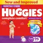 New & Improved Huggies Complete ComfortTM Wonder Pants is India's Fastest Absorbing diaper*. Our best ever^ Diaper Pants absorb upto 4x faster~ now with Dry XpertTM X shaped channel which helps to distribute the urine quickly and evenly to keep your baby dry and comfy. With India's 1st Diaper Pants with Bubble Bed technology Huggies provides a soft inner bubble layer that wraps your baby in softness. Made from air friendly material our diaper pants help your baby's skin to breathe#. Up to 12 Hours of Overnight Absorption@ allows you and your baby to have a comfortable sleep. Double leak guard provides extra padding to fight leakage. Our Pant style diapers are available in all sizes from Newborn/XS S M L XL XXL and XXXL sizes.