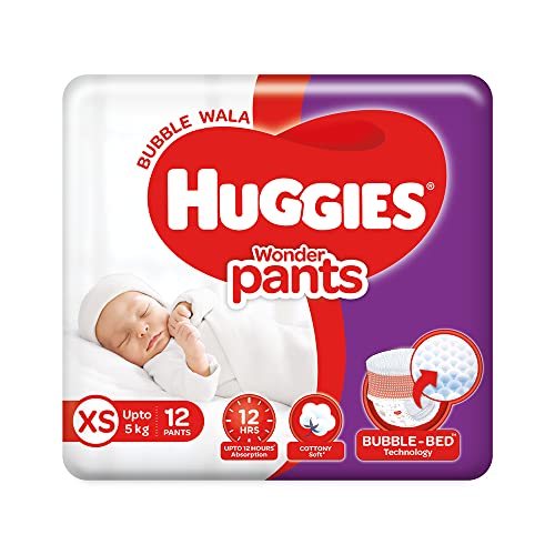 HomeBabyDiaperingBaby DiapersHuggies Wonder Pants Extra Small / New Born,For Unisex Baby (XS / NB) Size Diaper Pants, 12 count, with Bubble Bed Technology for comfort