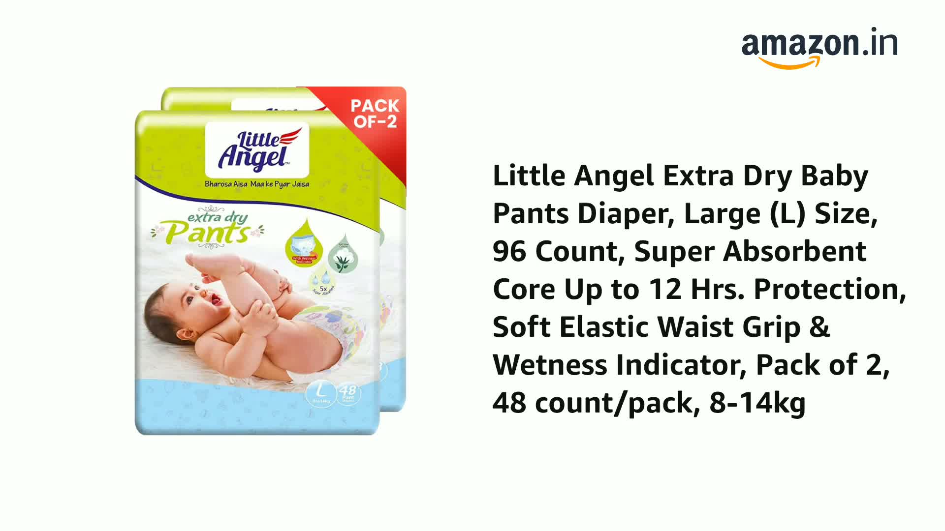 Little Angel Extra Dry Pants the perfect solution for keeping your little one's skin dry and comfortable all day long. These innovative diaper pants are specifically designed for Indian babies with unique features like a wetness indicator that lets you know when it's time for a change. The extra thin core is designed to provide superior absorbency while the ultra-soft air fresh material ensures your baby's delicate skin stays dry and comfortable. The 360-degree soft elastic band provides added protection against diaper rashes and the advanced double leak protection system provides peace of mind for worried parents. With their superior absorbency and comfortable fit Little Angel Extra Dry Pants are the perfect choice for Indian mothers who want the best for their babies. Trust Little Angel to keep your little one dry and happy all day long.