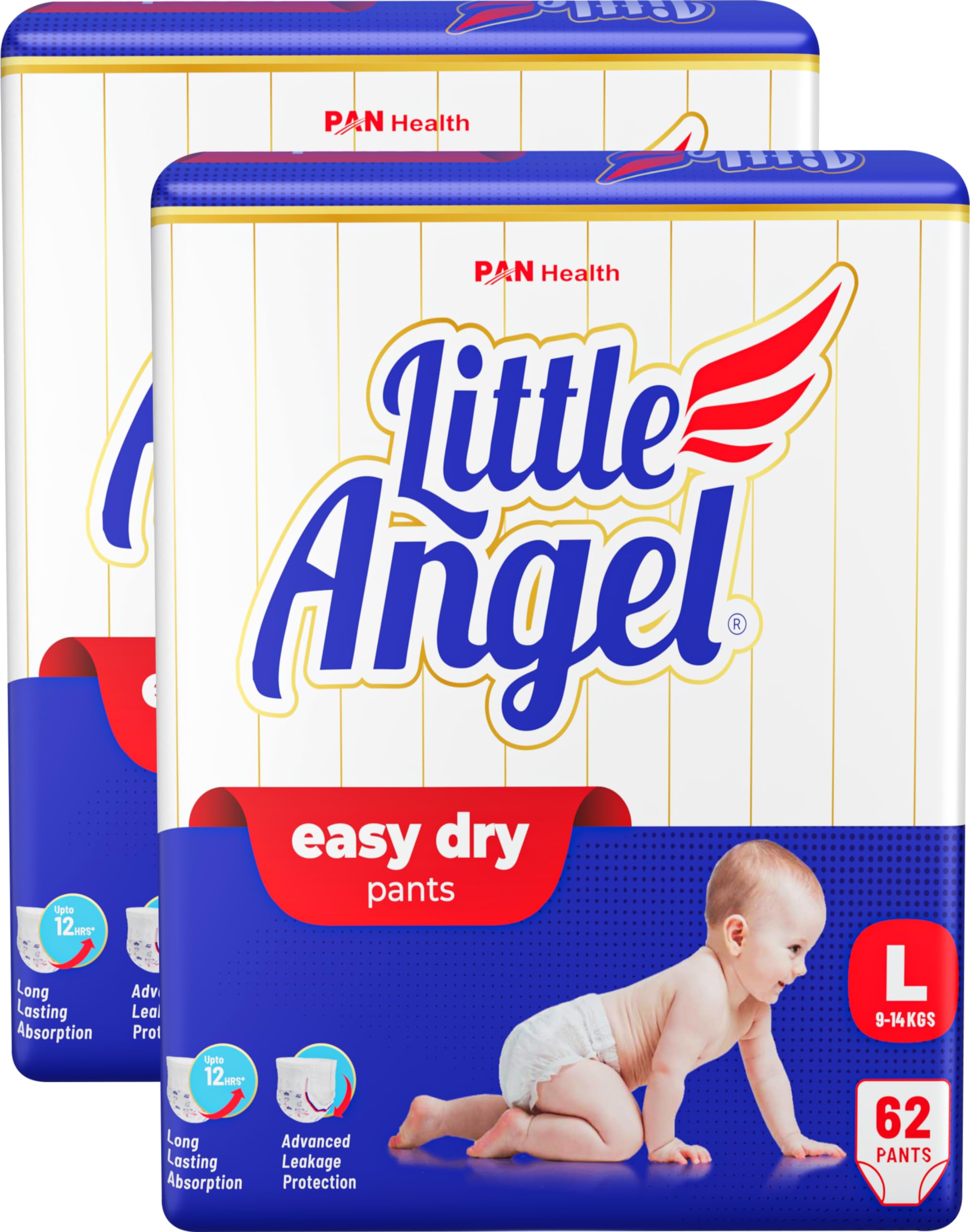Little angel easy dry pants are made specially for the Indian baby. With first in category features like wetness indicator. Extra thin core designed to give superior absorbency and keep your little angel’s skin dry all day long. It is made with ultra-soft air fresh material and a 360degree soft elastic band to keep your little one’s delicate skin protected from diaper rashes.• ADVANCED PROTECTION – • ADVANCED ABSORPTION – Quick Absorption – • Better Absorption – • ADVACED COMFORT – 360degree Waistband.