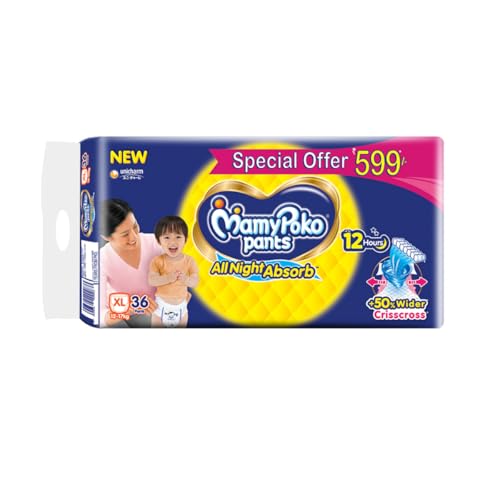 MamyPoko Pants All Night Absorb Baby Diapers, X-Large (XL), 36 Count 12-17 kg