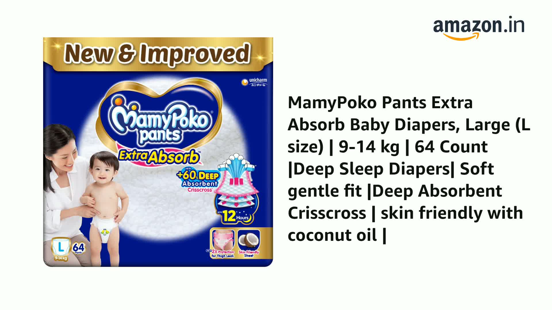 New & Improved Huggies Complete ComfortTM Wonder Pants is India's Fastest Absorbing diaper. Made from air friendly material our diaper pants help your baby's skin to breathe#. Up to 12 Hours of Overnight Absorption@ allows you and your baby to have a comfortable sleep. Double leak guard provides extra padding to fight leakage.