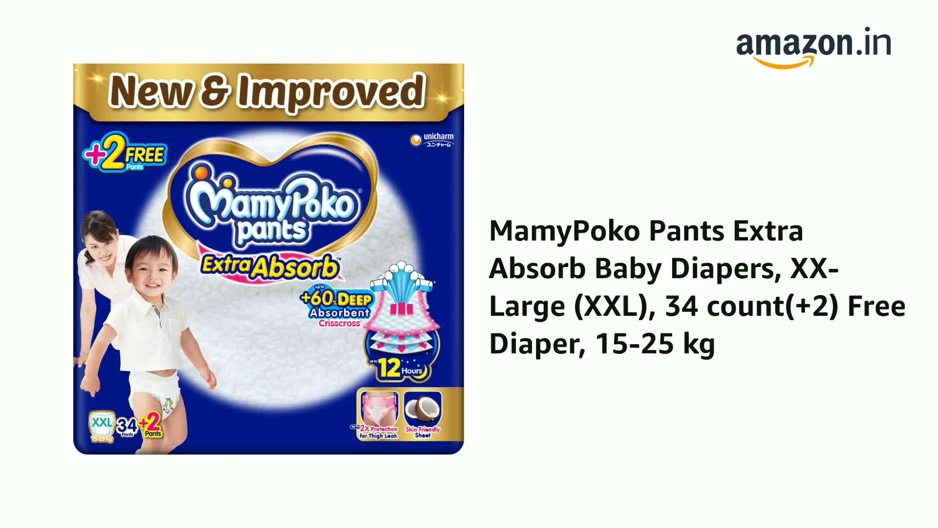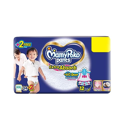MamyPoko Pants Extra Absorb Baby Diapers, XX-Large (XXL), 34 count(+2) Free Diaper, 15-25 kg