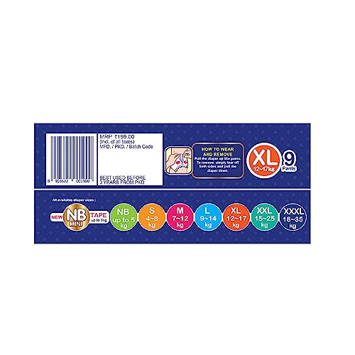 MamyPoko Pants Extra Absorb Diapers X-Large (XL) 9 Count 12-17 kg