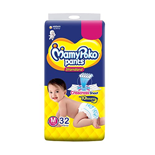 MamyPoko Pants Standard Baby Diapers, Medium (M), 32 Count, 7-12 kg