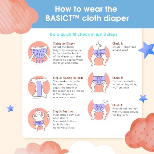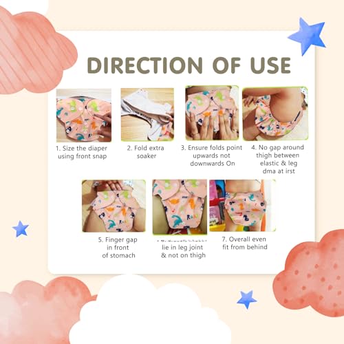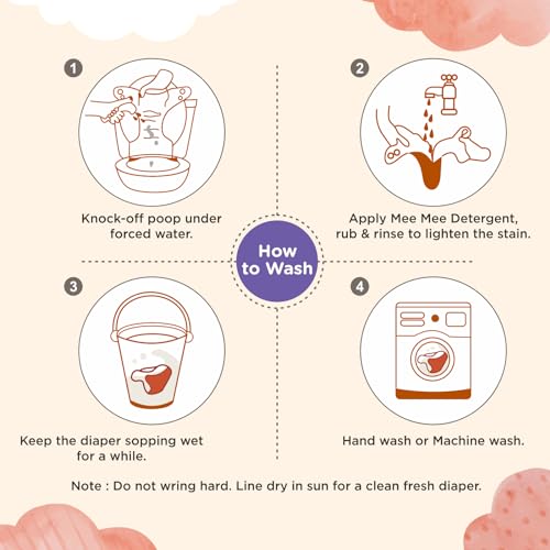 Mee Mee Reusable Baby Cloth Diaper, Double Leak Guard, High Absorption, Quick Dry, Stain-Proof Comfort & Protection, 3m+, Adjustable Waist & Height with snap Buttons, Absorbent Insert