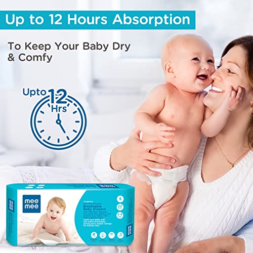 Mee Mee Premium Breathable Baby Diapers with Wetness Indicator (Small- 22 Pieces)