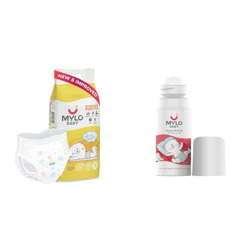 Mylo Baby Diaper Pants Medium (M) Size (38 count) Leak Proof & Mylo Baby Tummy Roll On (40ml) | 7-12 kgs | 12 Hours Protection | Made Safe Certified | Relieves Gas & Colic | Reduces Acid Reflux