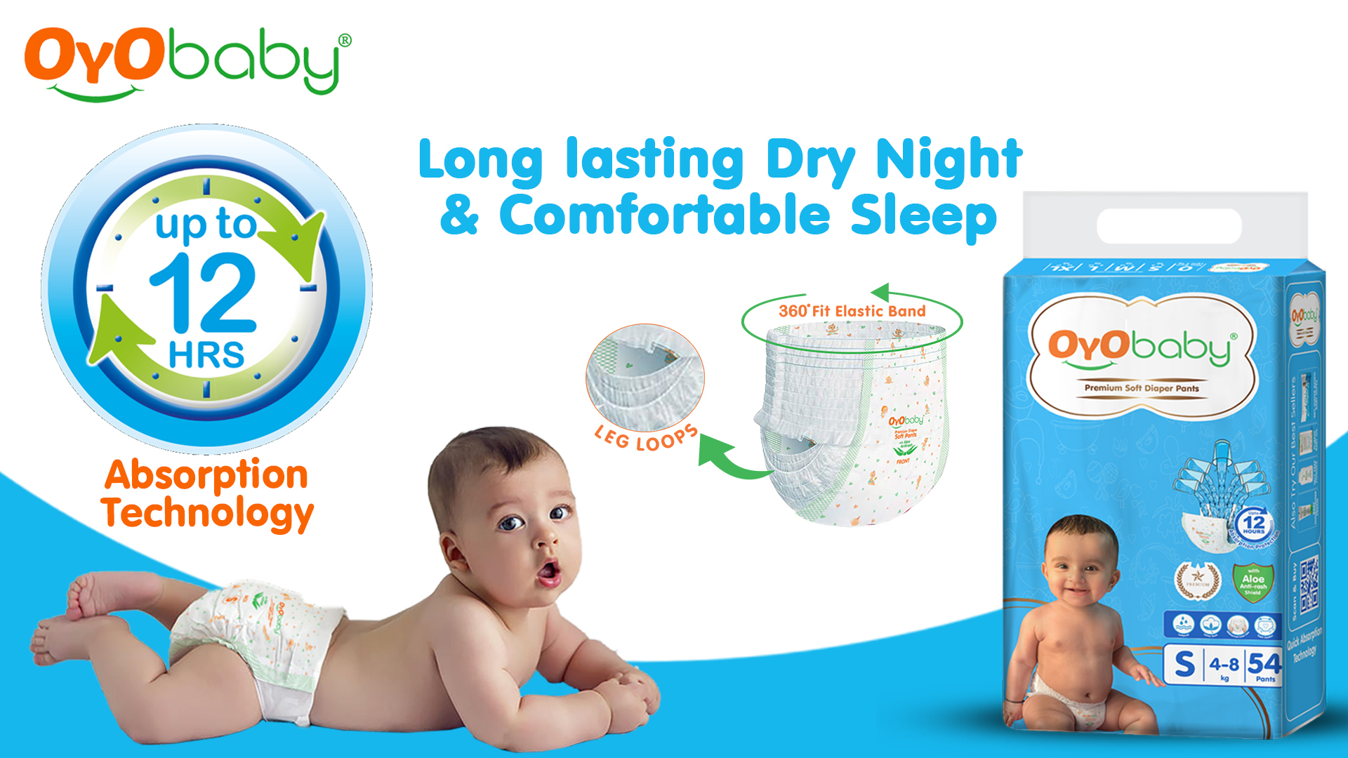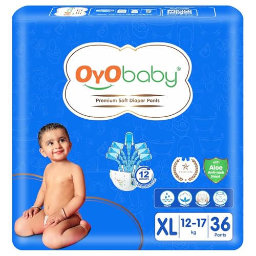 OYO BABY Comfortable Elastic Waistband Premium Soft Style Diaper Pants | Extra Large Size Baby Diapers Pants With Aloe Vera | 12-17 kg baby 36 Count (Pack of 1)