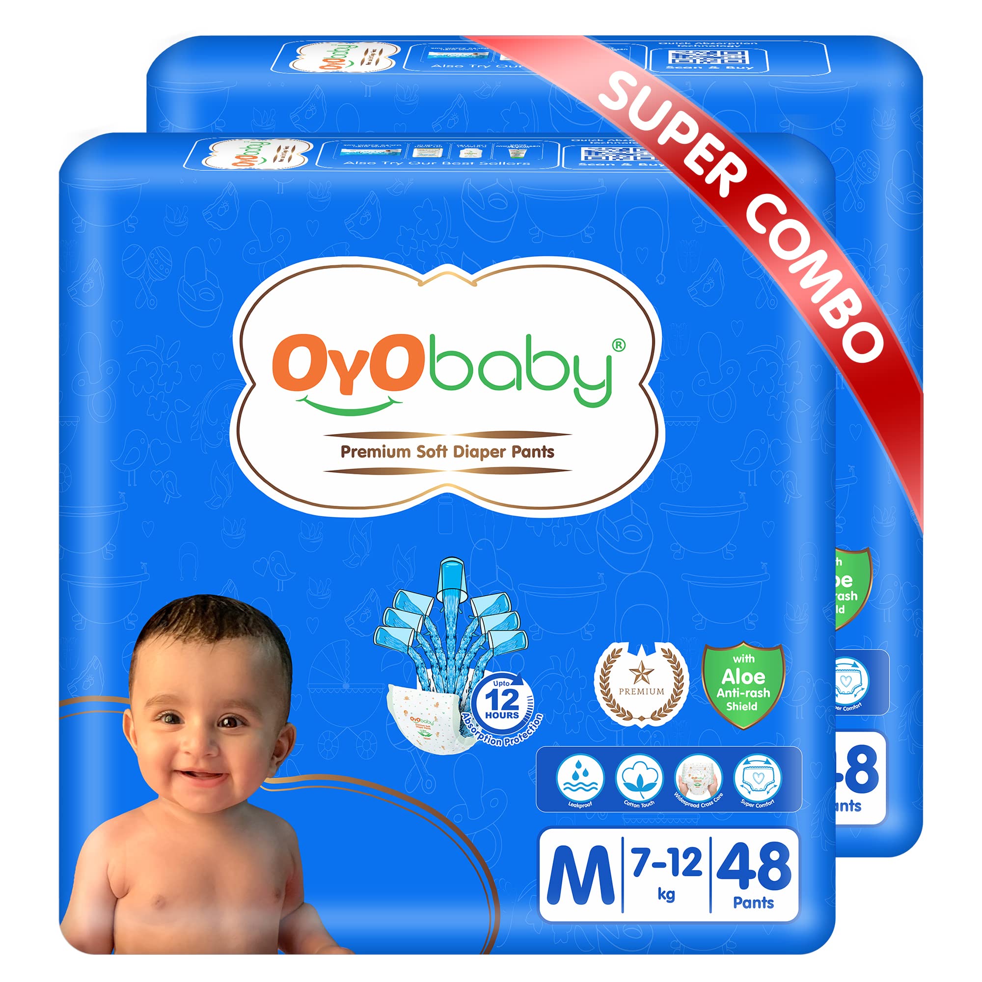 Absorption and Leak Prevention OYO BABY Diapers come with high-absorption capability and Super Absorbent Polymers that effectively prevent leakage. The polymers are safe and non-toxic and can soak up all the water and keep your baby dry.