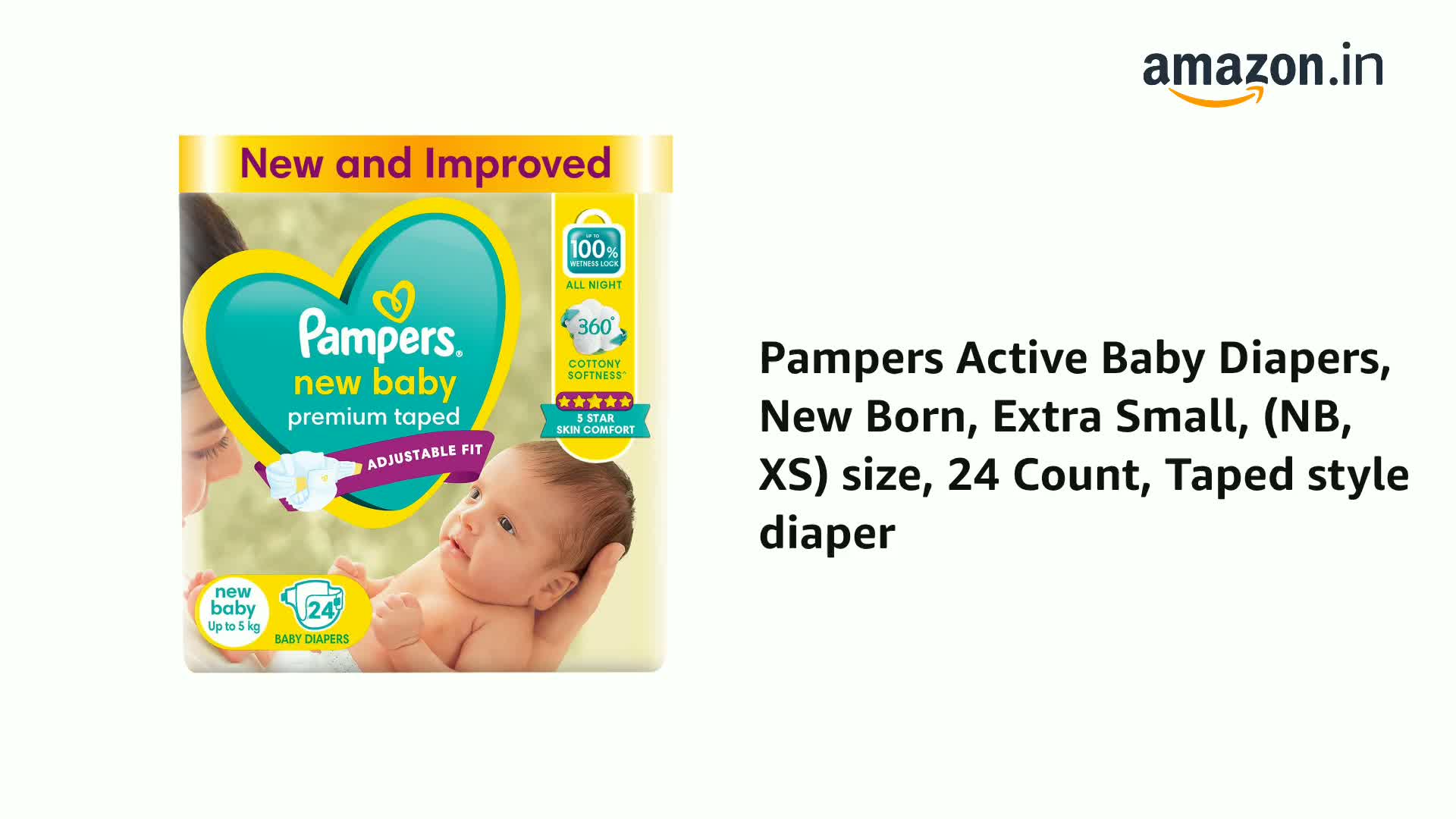 5 Star Skin Protection: The Best tape style diapers from Pampers with an outer layer of cotton-like softness this baby diaper provides intense care to your baby's sensitive skin and protects it effectively from friction rash and redness. These soft and comfort fitting diapers with stretchable sides are best for your baby's rest and playtime. The diaper's fastening tape sticks multiple times thus ensuring it stays in place even after you fasten it after checking your baby's diaper. Protection and nourishment of your baby's skin are taken care of with extracts of moisturizing Aloe Vera lotion characteristic of these best baby diapers.. These diapers are ultra-thin thanks to the absorbent gel material (AGM) commonly known as Magic Gel. This magic gel core of Pampers diapers is highly effective in absorbing frequent wetness. Naturally your baby's skin remains dry for upto 12 hours now no more frequent diaper changing or blow leaks for your little angel.