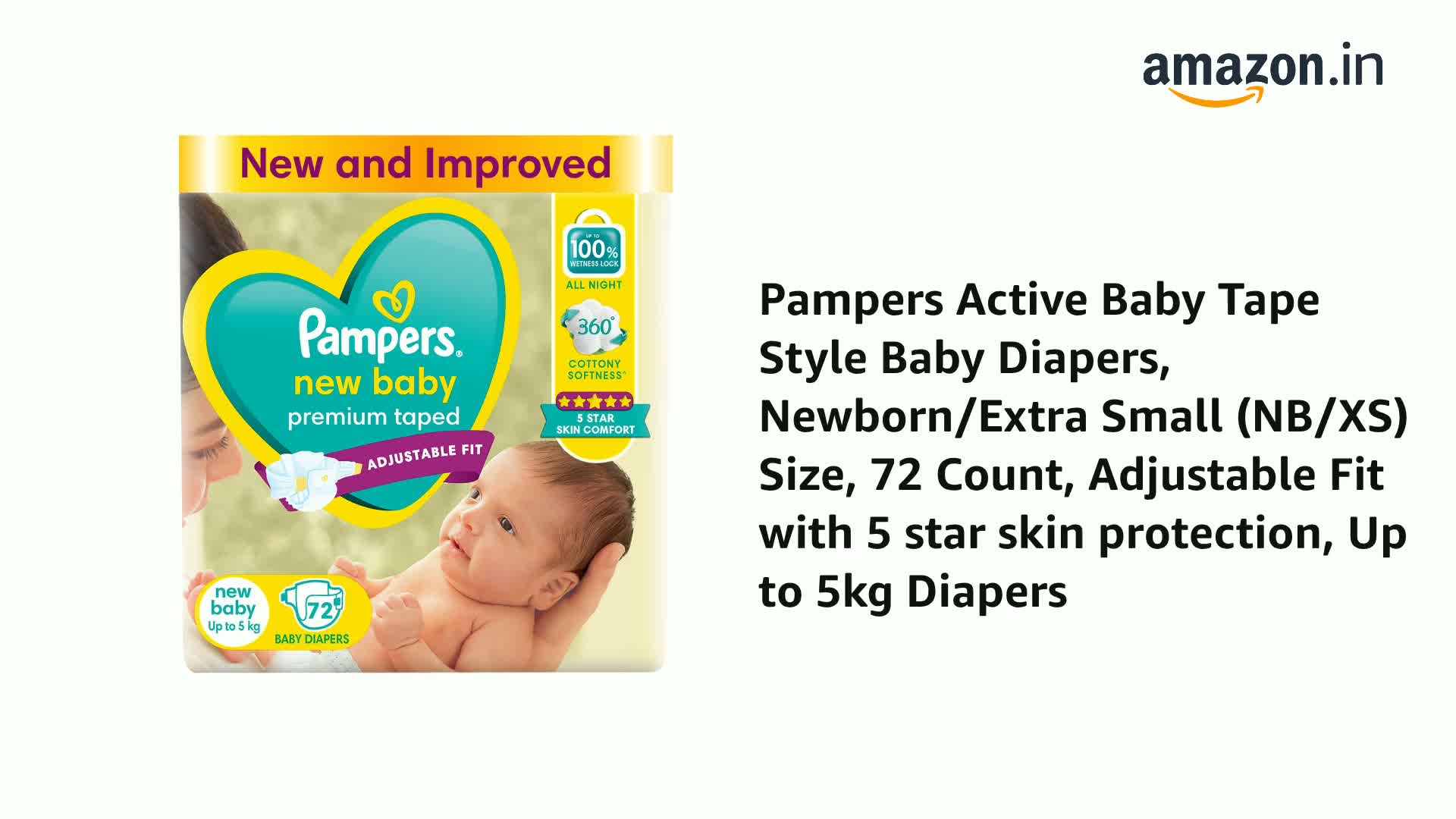 Pampers Active Baby Tape Style Baby Diapers, Newborn/Extra Small (NB/XS) Size, 72 Count, Adjustable Fit with 5 star skin protection, Up to 5kg Diapers