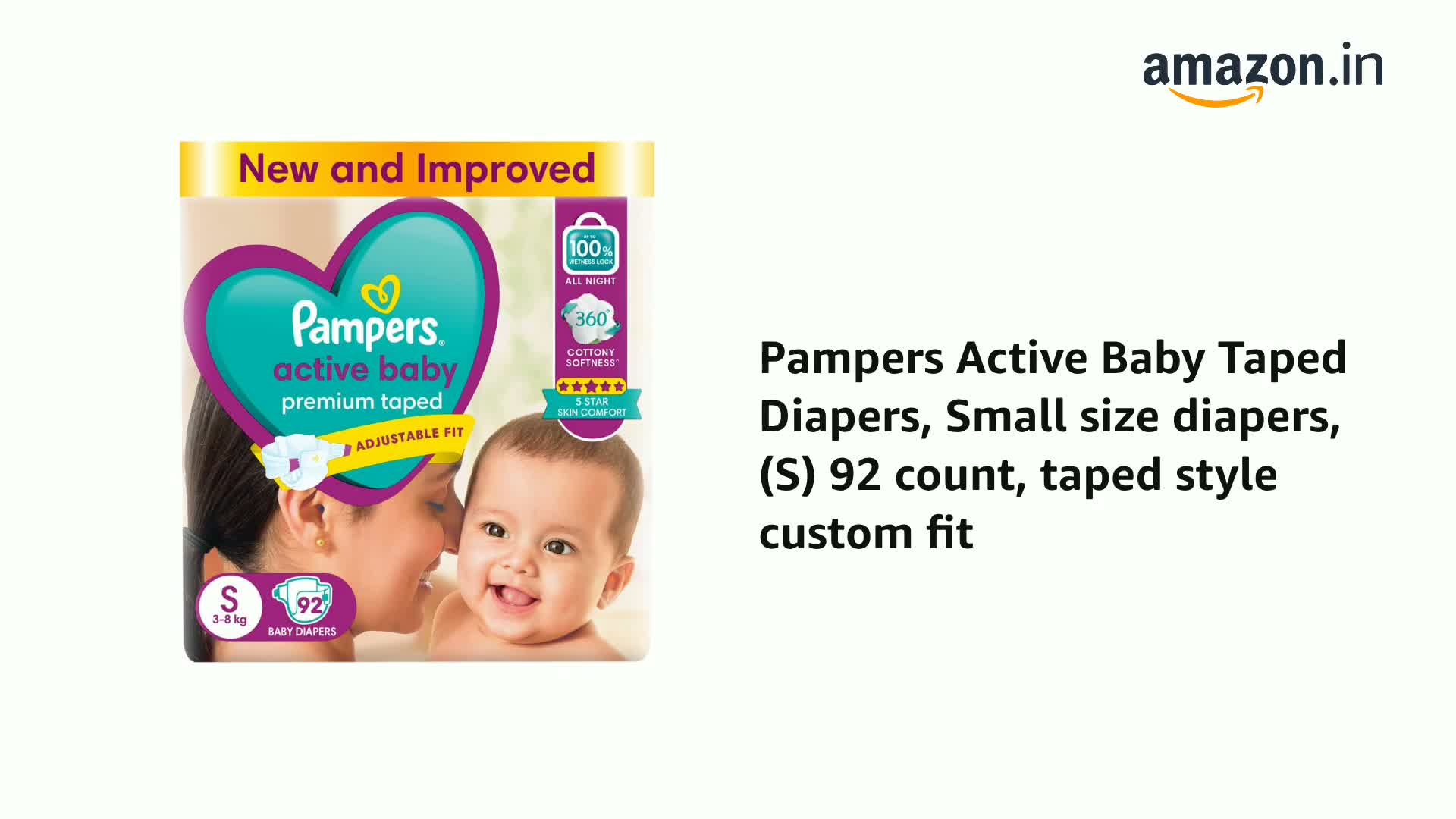 Your little miracle deserves gentle protection & full night sleep and mothers & doctors have always trusted Pampers to provide the care. Presenting New Pampers Active Baby taped diapers which provides your baby 5 star skin protection! How you ask? It has an Adjustable Taped Fit which you can custom-fit as per your baby need. The sides & waist are stretchable with 360 Degree Cottony Softness providing best comfort for your baby skin. Its Extra Dry Layer helps prevent leakage by spreading baby urine evenly and Pampers unique Magic Gel technology absorbs baby pee full night for up to 12 hrs. This is how these are Our Best Pampers Taped Diapers ever! Taped diapers adjustable custom fit cottony soft 12 hrs absorption best Pampers.