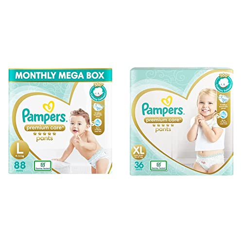 Pampers Unisex Premium Care Pants Diapers Monthly Box Pack, Large, 88 Count&Pampers Premium Care Pants Diapers, XL, 36 Count