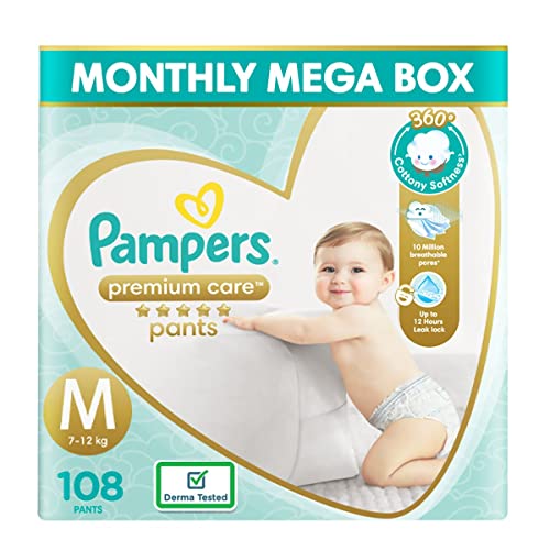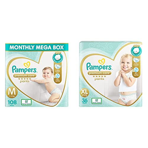 Pampers Premium Care Pants Diapers Monthly Box Pack, Medium, 108 Count & Pampers Premium Care Pants Diapers, XL, 36 Count