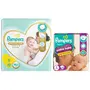Pampers Premium Care Pants Double Extra Large size baby Diapers (XXL) 30 Count Softest ever Pampers PantsNew Pampers Premium Care Pants with 360 degree cottony softness gives your baby the ultimate comfort all day all night long. Pampers Premium Care Pants contain soothing lotion with Aloe Vera to protect your baby skin from rashes while its 10 million micropores allow your baby skin to breathe. Its 12-hour leak lock facility keeps your baby dry and away from wetness. Experience 5-Star comfort with unique added features like Wetness Indicator which turns Yellow to Blue indicating when you may change the diaper and a Disposal Tape to help you with easy disposal. Pampers Premium Pants are available in New-born (NB) S M L XL and XXL sizes.Pampers Active Baby Taped Diapers Extra Large size diapers (XL) 32 count taped style custom fit5 Star Skin Protection: The Best tape style diapers from Pampers with an outer layer of cotton-like softness this baby diaper provides intense care to your baby's sensitive skin and protects it effectively from friction rash and redness. These soft and comfort fitting diapers with stretchable sides are best for your baby's rest and playtime. The diaper's fastening tape sticks multiple times thus ensuring it stays in place even after you fasten it after checking your baby's diaper. Protection and nourishment of your baby's skin are taken care of with extracts of moisturizing Aloe Vera lotion characteristic of these best baby diapers.. These diapers are ultra-thin thanks to the absorbent gel material (AGM) commonly known as Magic Gel. This magic gel core of Pampers diapers is highly effective in absorbing frequent wetness. Naturally your baby's skin remains dry for upto 12 hours now no more frequent diaper changing or blow leaks for your little angel. Keep your baby's skin delicate with 5 star skin protection. Pampers Active Baby comes with 5 features in just one diaper. 12 hours dryness baby lotion cottony softness breathable cover and comfortable fit. 12 Hours Dryness Our driest diaper keeps baby's skin touchably dry for up to 12 hours. Baby Lotion This unique diaper is infused with baby lotion to help prevent diaper rash. Cottony Softness Keep baby's skin free from irritation with cotton-like softness. Breathable Cover Air circulates so baby's skin can breathe easily and stay wonderfully fresh. Comfortable Fit A flexible side stretch design keeps it snug and comfy whether baby is at rest or play. Diaper Sizer Five Features in One Diaper View Larger Comparison Chart View Larger Using Pampers Pants When to Change Right before or right after every feeding After every bowel movement Before bedtime When your baby wakes up When you go out with your baby How to Change Put the diaper under the baby's body. Pull the elastic side properly. Apply both sides in symmetrical position on landing zone. Adjust the cuff around legs on both sides.