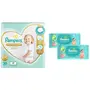 Pampers Premium Care Pants Double Extra Large size baby diapers (XXL) 30 Count Softest ever Pampers pantsNew Pampers Premium Care Pants with 360 degree cottony softness gives your baby the ultimate comfort all day all night long. Pampers Premium Care Pants contain soothing lotion with Aloe Vera to protect your baby skin from rashes while its 10 million micropores allow your baby skin to breathe. Its 12-hour leak lock facility keeps your baby dry and away from wetness. Experience 5-Star comfort with unique added features like Wetness Indicator which turns Yellow to Blue indicating when you may change the diaper and a Disposal Tape to help you with easy disposal. Pampers Premium Pants are available in New-born (NB) S M L XL and XXL sizes.Pampers Baby Aloe Wipes with Lid 72 WipesEvery little miracle deserves gentle protection mothers & doctors have always trusted Pampers to provide the care. Presenting Pampers Baby Wipes with Aloe which have the goodness of lotion with Aloe vera to protect against skin rashes & redness. Containing 97% pure water Pampers Wipes provide mild cleaning for baby supples skin just like cotton & water. Pampers wipes are safe as they are paraben-free and infused with Vitamin-E. They help restore the natural pH of your baby skin keeping it healthy and nourished. Pampers wipes are thick soft and strong ensuring a perfect gentle cleaning for the baby skin. Lastly the wipes come with a refreshing mild fragrance that you and your baby will surely love. Wet wipes tissues with lid 72 pcs combo pack.