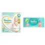 Pampers Premium Care Pants Extra Large size baby Diapers (XL) 36 Count Softest ever Pampers PantsNew Pampers Premium Care Pants with 360 degree cottony softness gives your baby the ultimate comfort all day all night long. Pampers Premium Care Pants contain soothing lotion with Aloe Vera to protect your baby’s skin from rashes while its 10 million micropores allow your baby’s skin to breathe. Its 12-hour leak lock facility keeps your baby dry and away from wetness. Experience 5-Star comfort with unique added features like Wetness Indicator which turns Yellow to Blue indicating when you may change the diaper and a Disposal Tape to help you with easy disposal. Pampers Premium Pants are available in New-born (NB) S M L XL and XXL sizes.Pampers Baby Aloe Wipes with Lid 72 WipesEvery little miracle deserves gentle protection – mothers & doctors have always trusted Pampers to provide the care. Presenting Pampers Baby Wipes with Aloe which have the goodness of lotion with Aloe vera to protect against skin rashes & redness. Containing 97% pure water Pampers Wipes provide mild cleaning for baby’s supples skin just like cotton & water. Pampers wipes are safe as they are paraben-free and infused with Vitamin-E. They help restore the natural pH of your baby’s skin keeping it healthy and nourished. Pampers wipes are thick soft and strong ensuring a perfect gentle cleaning for the baby’s skin. Lastly the wipes come with a refreshing mild fragrance that you and your baby will surely love. Wet wipes tissues with lid 72 pcs combo pack.