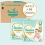 Pampers Premium Care Pants Large size baby Diapers (L) 88 Count Softest ever Pampers PantsNew Pampers Premium Care Pants with 360 degree cottony softness gives your baby the ultimate comfort all day all night long. Pampers Premium Care Pants contain soothing lotion with Aloe Vera to protect your baby’s skin from rashes while its 10 million micropores allow your baby’s skin to breathe. Its 12-hour leak lock facility keeps your baby dry and away from wetness. Experience 5-Star comfort with unique added features like Wetness Indicator which turns Yellow to Blue indicating when you may change the diaper and a Disposal Tape to help you with easy disposal. Pampers Premium Pants are available in New-born (NB) S M L XL and XXL sizes.Pampers Active Baby Taped Diapers Large size diapers (LG) 78 count taped style custom fit5 Star Skin Protection: The Best tape style diapers from Pampers with an outer layer of cotton-like softness this baby diaper provides intense care to your baby's sensitive skin and protects it effectively from friction rash and redness. These soft and comfort fitting diapers with stretchable sides are best for your baby's rest and playtime. The diaper's fastening tape sticks multiple times thus ensuring it stays in place even after you fasten it after checking your baby's diaper. Protection and nourishment of your baby's skin are taken care of with extracts of moisturizing Aloe Vera lotion characteristic of these best baby diapers.. These diapers are ultra-thin thanks to the absorbent gel material (AGM) commonly known as Magic Gel. This magic gel core of Pampers diapers is highly effective in absorbing frequent wetness. Naturally your baby's skin remains dry for upto 12 hours now no more frequent diaper changing or blow leaks for your little angel.