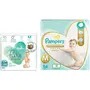 Pampers Premium Care Pants Medium size baby Diapers (M) 54 Count Softest ever Pampers PantsNew Pampers Premium Care Pants with 360 degree cottony softness gives your baby the ultimate comfort all day all night long. Pampers Premium Care Pants contain soothing lotion with Aloe Vera to protect your baby skin from rashes while its 10 million micropores allow your baby skin to breathe. Its 12-hour leak lock facility keeps your baby dry and away from wetness. Experience 5-Star comfort with unique added features like Wetness Indicator which turns Yellow to Blue indicating when you may change the diaper and a Disposal Tape to help you with easy disposal. Pampers Premium Pants are available in New-born (NB) S M L XL and XXL sizes.Pampers Pure Protection Baby Diapers Small Size Taped Diapers (SM) 29 Count [Hypoallergenic and unscented protection 0% chlorine paraben latex]Pampers Pure Protection Baby Diapers