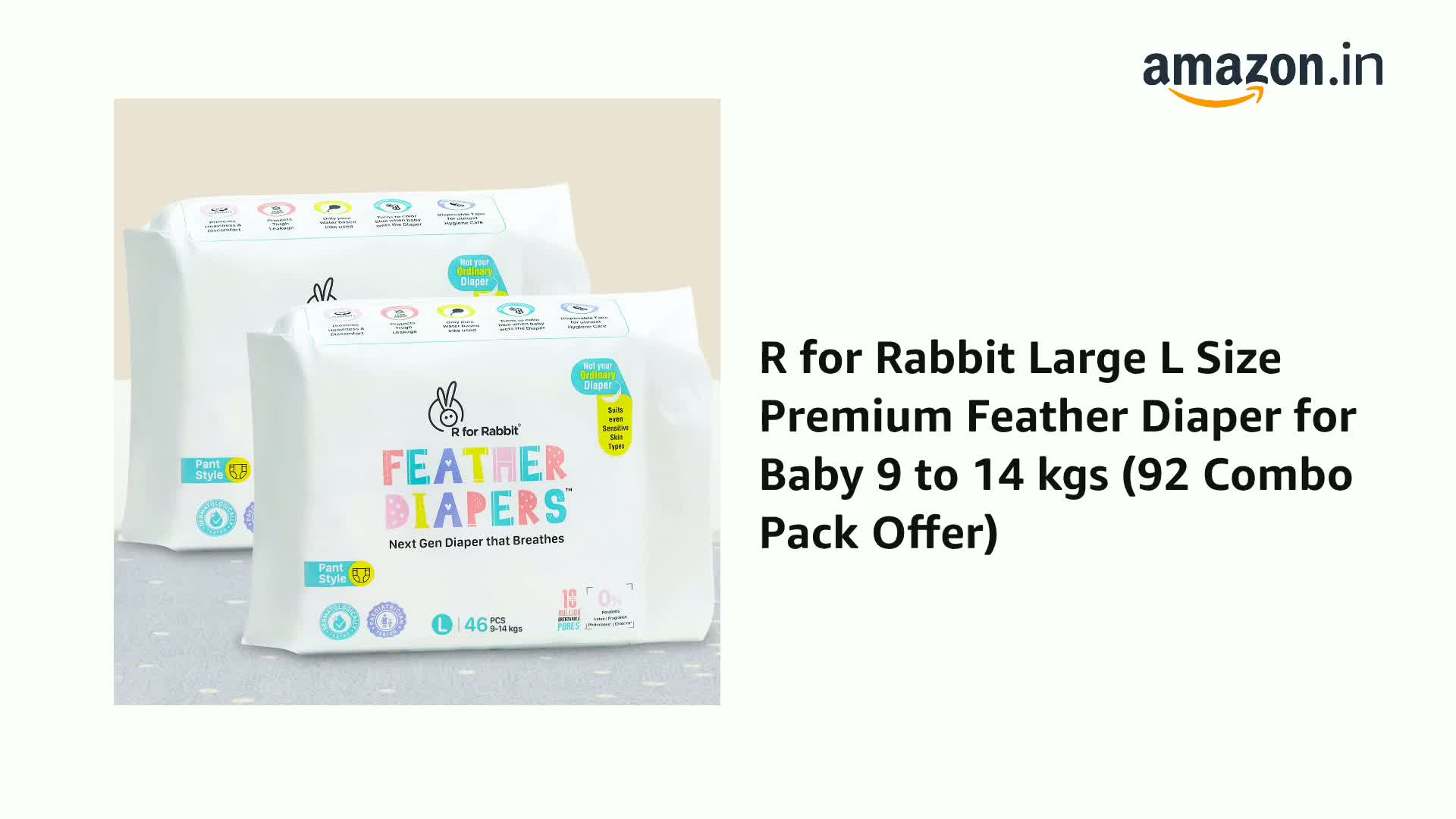 • Sizing Guide: R for Rabbit Feather Diaper with L Size is ideal for babies from 9-14kgs