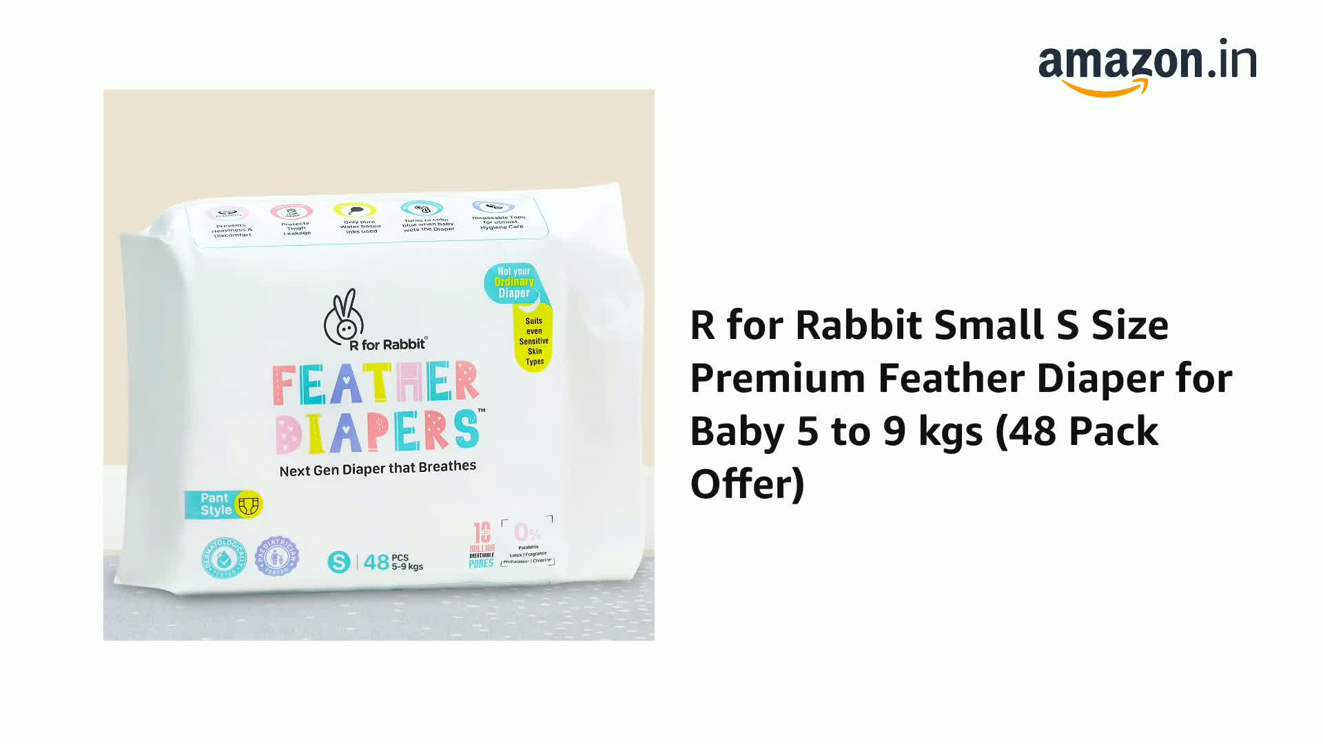 R for Rabbit Small S Size Premium Feather Diaper for Baby 5 to 9 kgs (48 Pack Offer)