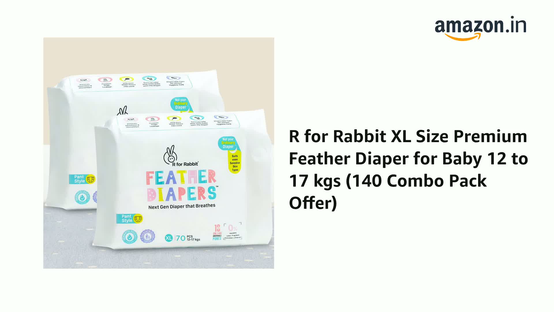 R for Rabbit XL Size Premium Feather Diaper for Baby 12 to 17 kgs (140 Combo Pack Offer)